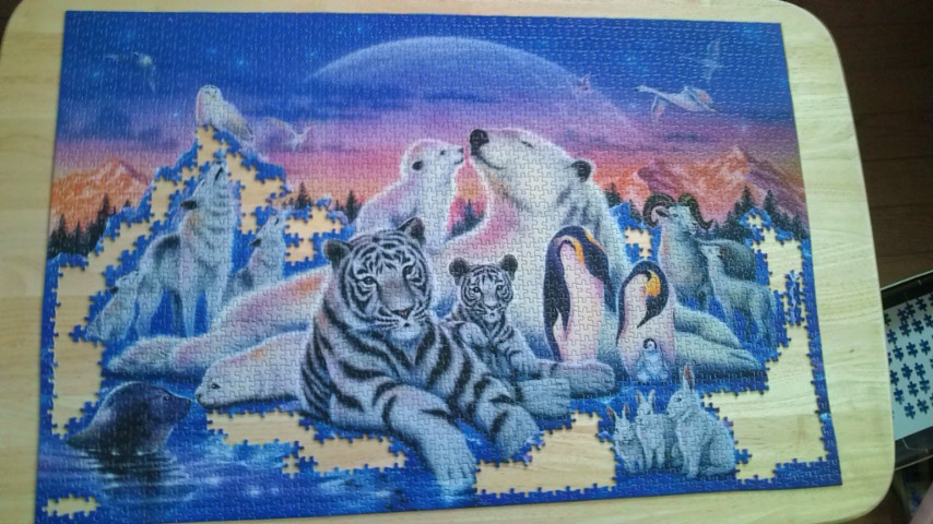 白虎だけじゃなくて、白のピースで後ろの白熊まで大体出来た。