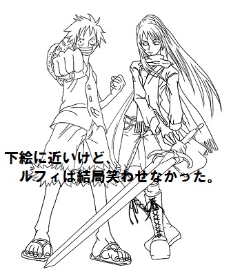 2枚目が完成に近いんだけど…ルフィの表情は結局笑顔ではなくなった。
