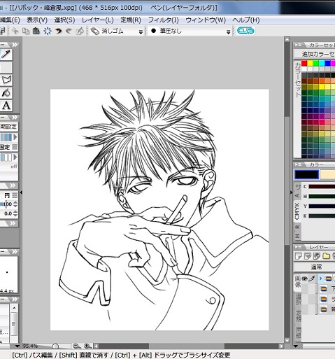 それからレイヤーを数枚使ってらしく顔、髪、体系を描いていきます。