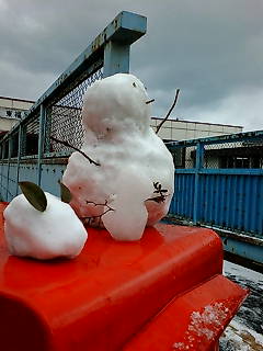 友人達と作った雪だるまと、雪ウサギ。