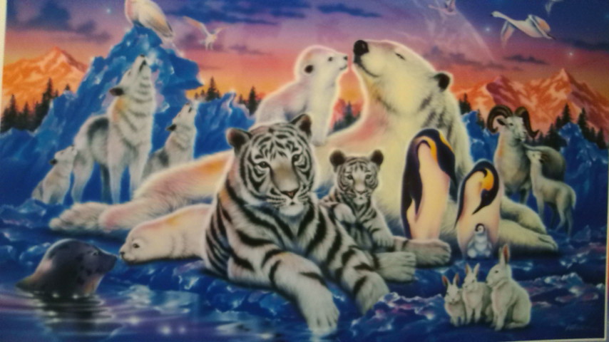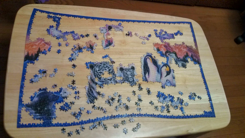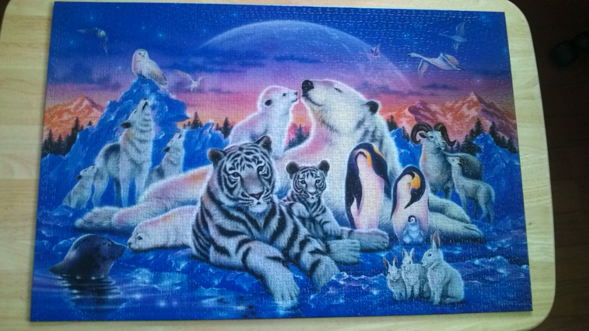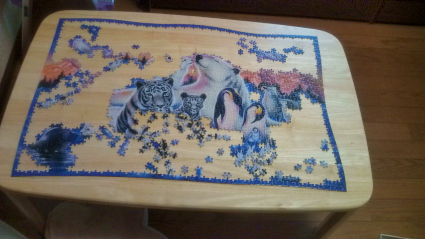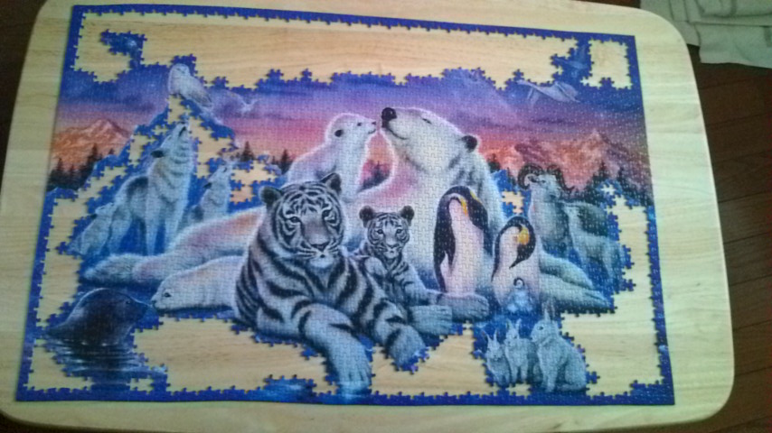 白虎だけじゃなくて、白のピースで後ろの白熊まで大体出来た。