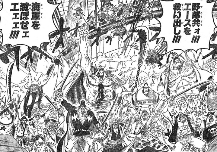 海軍の総戦力をマリンフォードに集結させ、迎え撃つのは白ひげ海賊団。