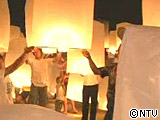 川に流す灯篭流しじゃなくて、空に浮かべる灯篭飛ばし。