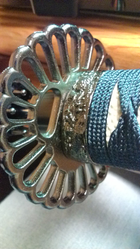 柄巻の下は、ちゃんとらしく鮫皮っぽいのが巻いてあるという凝りよう。