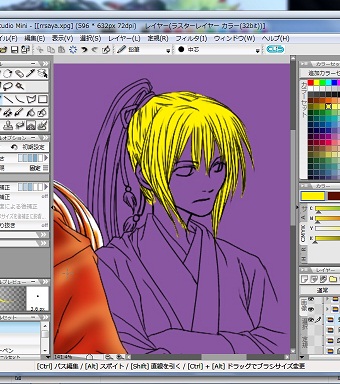 一旦は黄色で塗り残しがないかを確認しながらcolorを入れていきます。