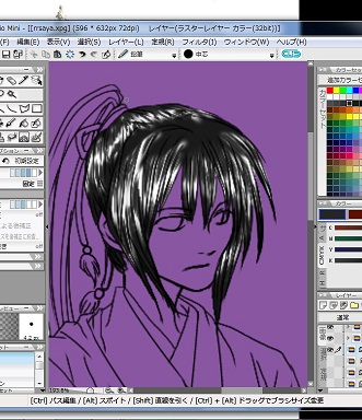 今回は右側が光源のつもりなので、特に右側の前髪や、