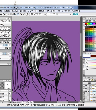 ここで顔と髪の間の塗り残し(紫表示なっている部分)などがないかを